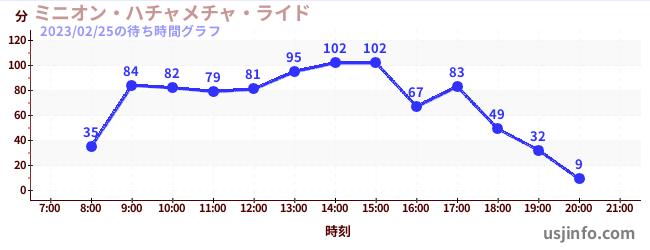 • ミニオン・ハチャメチャ・ライド$B$N(B2023年02月25日の待ち時間