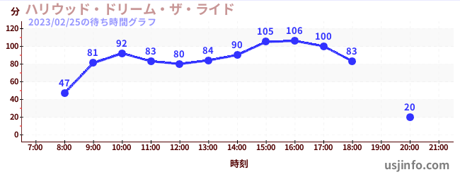 • ハリウッド・ドリーム・ザ・ライド$B$N(B2023年02月25日の待ち時間