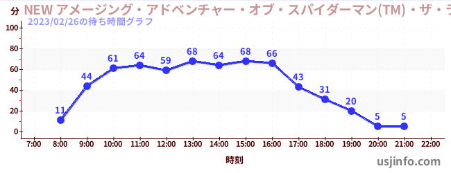 • NEW アメージング・アドベンチャー・オブ・スパイダーマン(TM)・ザ・ライド 4K3D$B$N(B2023年02月26日の待ち時間