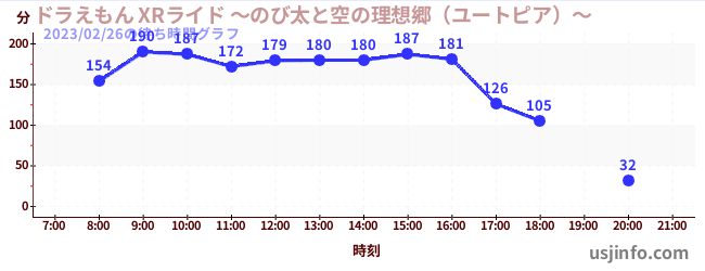 • ドラえもん XRライド ~のび太と空の理想郷(ユートピア)~$B$N(B2023年02月26日の待ち時間