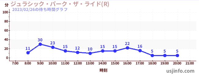 • ジュラシック・パーク・ザ・ライド(R)$B$N(B2023年02月26日の待ち時間