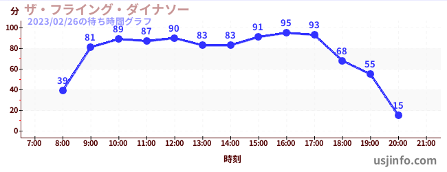 • ザ・フライング・ダイナソー$B$N(B2023年02月26日の待ち時間