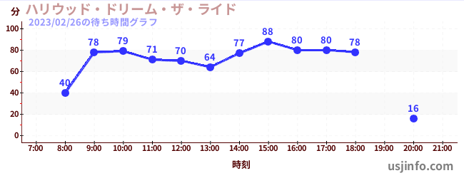 • ハリウッド・ドリーム・ザ・ライド$B$N(B2023年02月26日の待ち時間