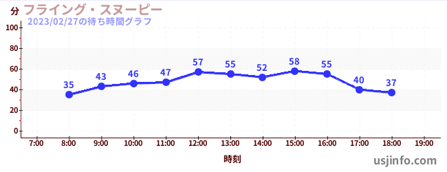 • フライング・スヌーピー$B$N(B2023年02月27日の待ち時間