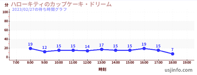 • ハローキティのカップケーキ・ドリーム$B$N(B2023年02月27日の待ち時間