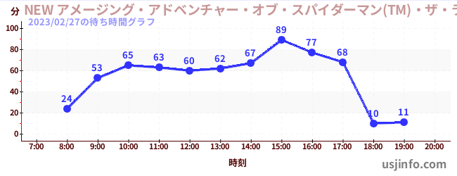 • NEW アメージング・アドベンチャー・オブ・スパイダーマン(TM)・ザ・ライド 4K3D$B$N(B2023年02月27日の待ち時間