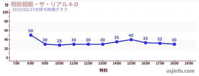 • 呪術廻戦・ザ・リアル 4-D$B$N(B2023年02月27日の待ち時間