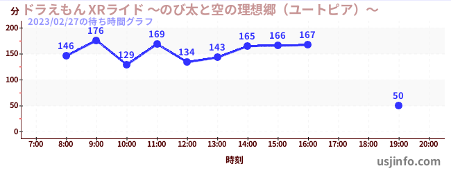 • ドラえもん XRライド ~のび太と空の理想郷(ユートピア)~$B$N(B2023年02月27日の待ち時間