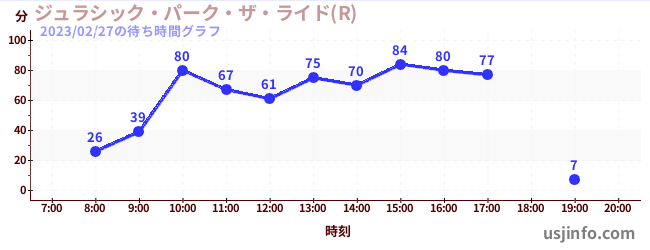 • ジュラシック・パーク・ザ・ライド(R)$B$N(B2023年02月27日の待ち時間