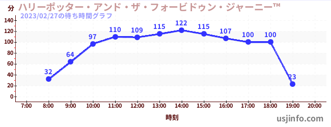 • ハリーポッター・アンド・ザ・フォービドゥン・ジャーニー™$B$N(B2023年02月27日の待ち時間