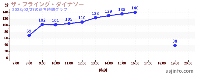 • ザ・フライング・ダイナソー$B$N(B2023年02月27日の待ち時間