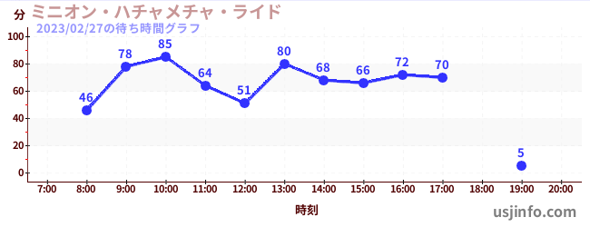 • ミニオン・ハチャメチャ・ライド$B$N(B2023年02月27日の待ち時間