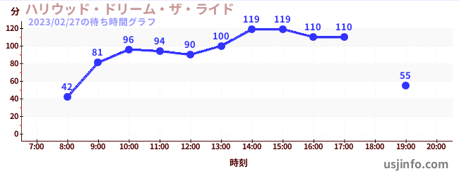 • ハリウッド・ドリーム・ザ・ライド$B$N(B2023年02月27日の待ち時間