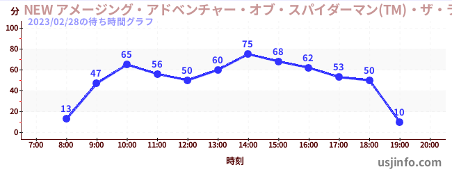 • NEW アメージング・アドベンチャー・オブ・スパイダーマン(TM)・ザ・ライド 4K3D$B$N(B2023年02月28日の待ち時間