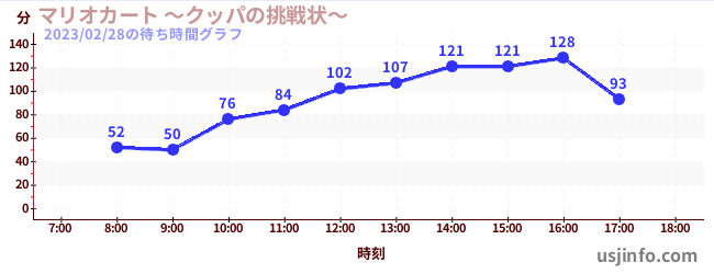 • マリオカート ~クッパの挑戦状~$B$N(B2023年02月28日の待ち時間
