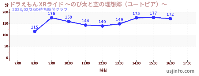 • ドラえもん XRライド ~のび太と空の理想郷(ユートピア)~$B$N(B2023年02月28日の待ち時間
