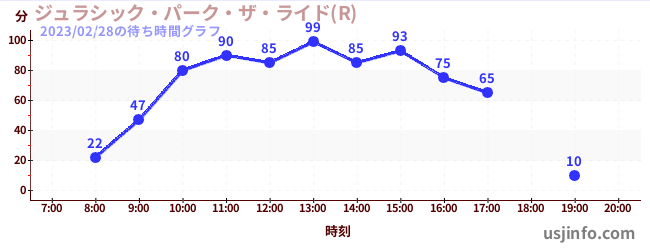 • ジュラシック・パーク・ザ・ライド(R)$B$N(B2023年02月28日の待ち時間