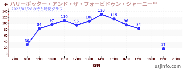 • ハリーポッター・アンド・ザ・フォービドゥン・ジャーニー™$B$N(B2023年02月28日の待ち時間