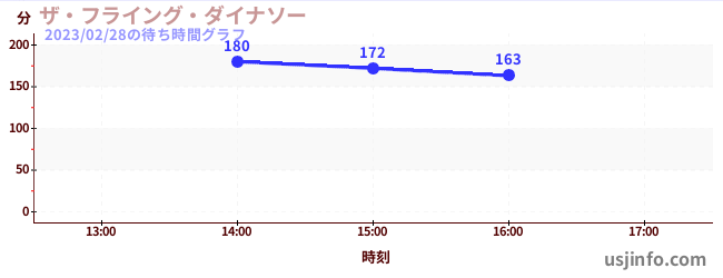 • ザ・フライング・ダイナソー$B$N(B2023年02月28日の待ち時間