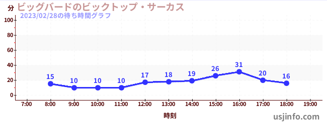 • ビッグバードのビックトップ・サーカス$B$N(B2023年02月28日の待ち時間