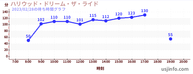 • ハリウッド・ドリーム・ザ・ライド$B$N(B2023年02月28日の待ち時間
