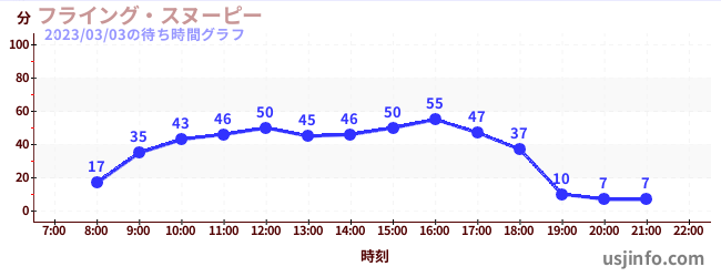 • フライング・スヌーピー$B$N(B2023年03月03日の待ち時間