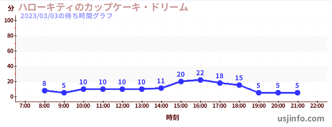 • ハローキティのカップケーキ・ドリーム$B$N(B2023年03月03日の待ち時間