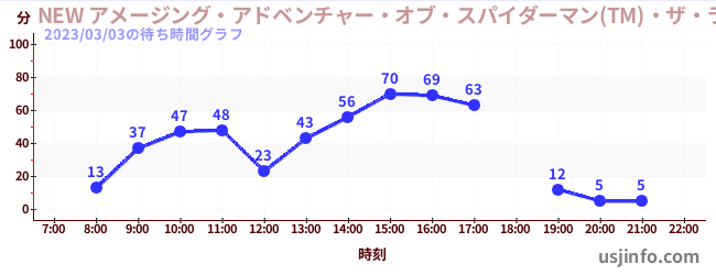 • NEW アメージング・アドベンチャー・オブ・スパイダーマン(TM)・ザ・ライド 4K3D$B$N(B2023年03月03日の待ち時間