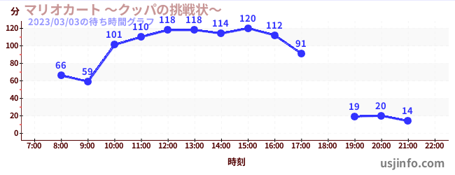 • マリオカート ~クッパの挑戦状~$B$N(B2023年03月03日の待ち時間