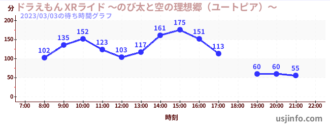 • ドラえもん XRライド ~のび太と空の理想郷(ユートピア)~$B$N(B2023年03月03日の待ち時間