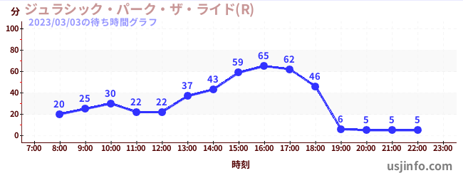 • ジュラシック・パーク・ザ・ライド(R)$B$N(B2023年03月03日の待ち時間