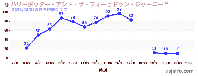 • ハリーポッター・アンド・ザ・フォービドゥン・ジャーニー™$B$N(B2023年03月03日の待ち時間