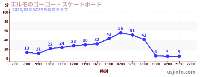• エルモのゴーゴー・スケートボード$B$N(B2023年03月03日の待ち時間