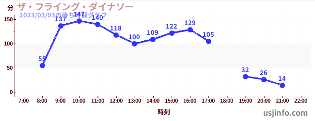 • ザ・フライング・ダイナソー$B$N(B2023年03月03日の待ち時間