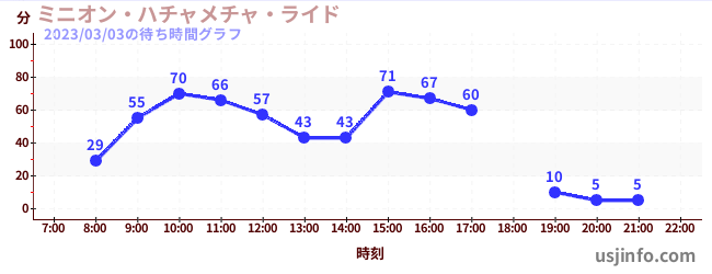• ミニオン・ハチャメチャ・ライド$B$N(B2023年03月03日の待ち時間