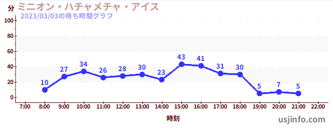 • ミニオン・ハチャメチャ・アイス$B$N(B2023年03月03日の待ち時間