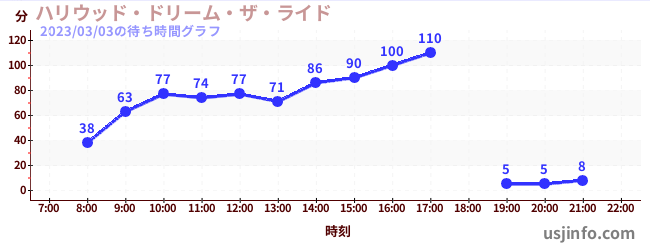 • ハリウッド・ドリーム・ザ・ライド$B$N(B2023年03月03日の待ち時間