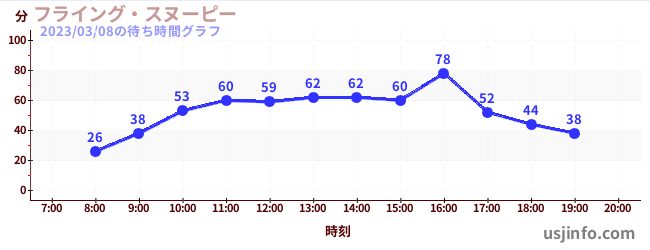 • フライング・スヌーピー$B$N(B2023年03月08日の待ち時間