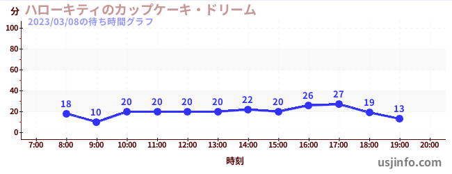 • ハローキティのカップケーキ・ドリーム$B$N(B2023年03月08日の待ち時間