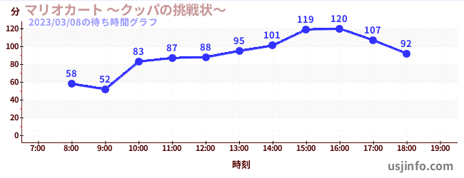 • マリオカート ~クッパの挑戦状~$B$N(B2023年03月08日の待ち時間