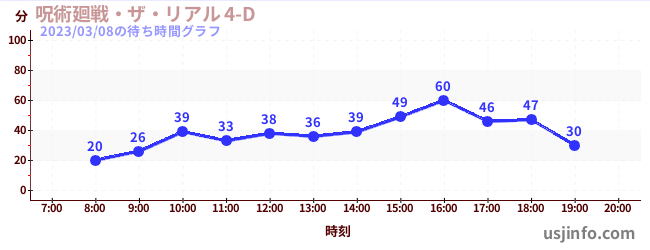 • 呪術廻戦・ザ・リアル 4-D$B$N(B2023年03月08日の待ち時間