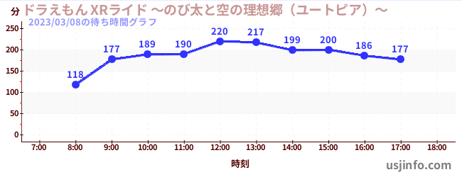 • ドラえもん XRライド ~のび太と空の理想郷(ユートピア)~$B$N(B2023年03月08日の待ち時間