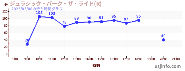 • ジュラシック・パーク・ザ・ライド(R)$B$N(B2023年03月08日の待ち時間