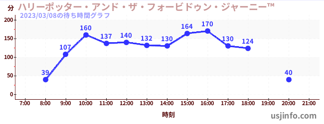 • ハリーポッター・アンド・ザ・フォービドゥン・ジャーニー™$B$N(B2023年03月08日の待ち時間