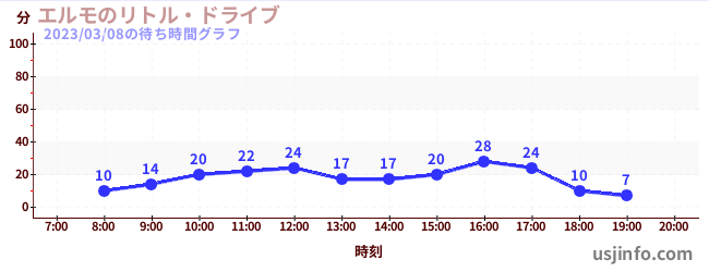 • エルモのリトル・ドライブ$B$N(B2023年03月08日の待ち時間