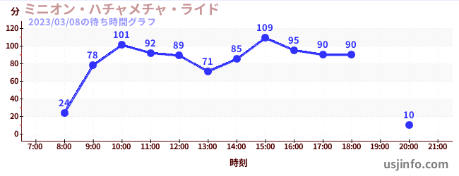 • ミニオン・ハチャメチャ・ライド$B$N(B2023年03月08日の待ち時間