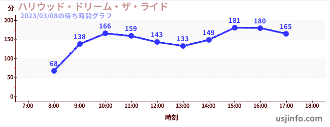 • ハリウッド・ドリーム・ザ・ライド$B$N(B2023年03月08日の待ち時間