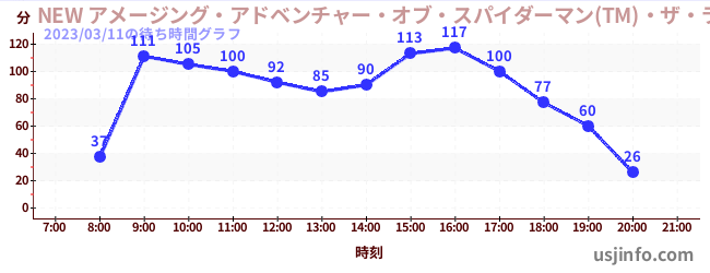 • NEW アメージング・アドベンチャー・オブ・スパイダーマン(TM)・ザ・ライド 4K3D$B$N(B2023年03月11日の待ち時間