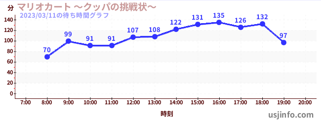 • マリオカート ~クッパの挑戦状~$B$N(B2023年03月11日の待ち時間