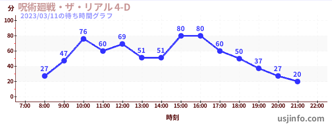 • 呪術廻戦・ザ・リアル 4-D$B$N(B2023年03月11日の待ち時間